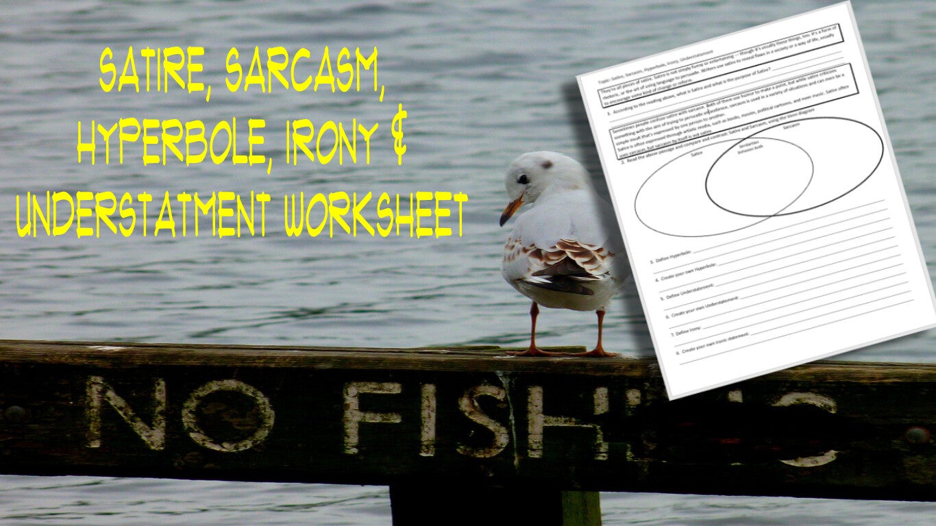 Quick one page worksheet to explore topics of Satire, Sarcasm, Hyperbole, Irony, Understatement