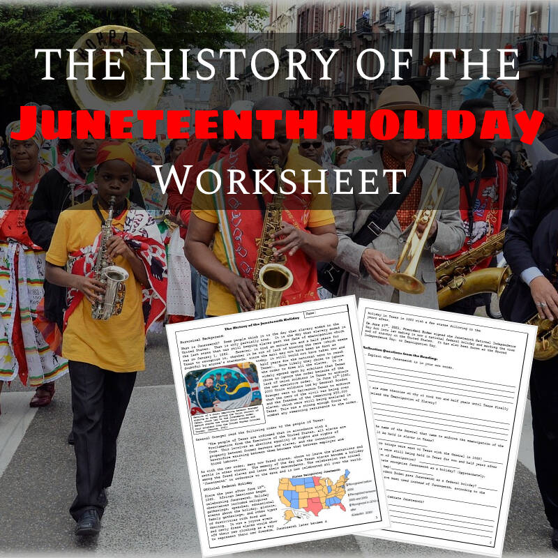The history and description of Juneteenth, which is now as of June 17th, 2020 an official Federal holiday. Worksheet includes reading and reading reflection questions. Good supplementary assignment for any social studies subject.